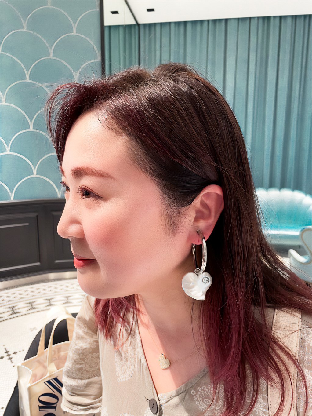 片耳を出すヘアスタイルに変えた時、美容師さんに「ピアスかイヤリングか付けてくださいね!!」と言われていたのですが、繊細な感じの気に入ったアクセサリーしか所有しておらず、どデカい何か...キラキラしたデザインを探していました。画像のデザインでは無いのですが、先日気に入ったものを購入したので、現場でお会いした時に見ていただきたいです( ^ω^ )